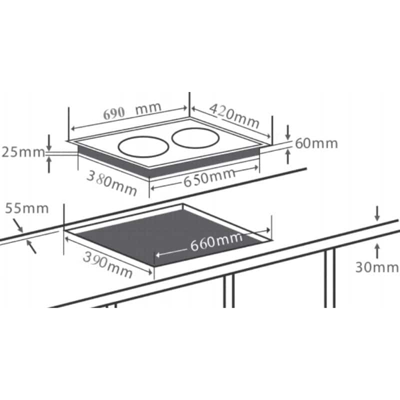 – Kích thước mặt bếp: 690 x 420 x 60 mm