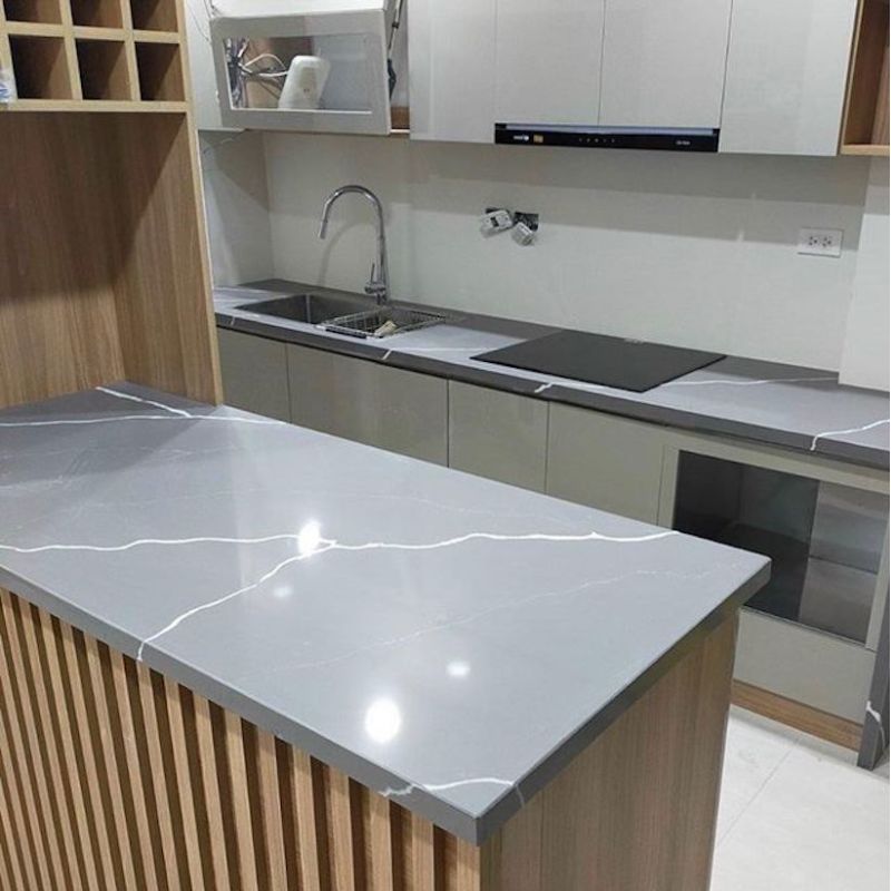 - Làm bàn đảo: Đá Xám tia sét cũng rất phù hợp để làm bàn đảo bếp, tạo điểm nhấn cho không gian nấu nướng.
