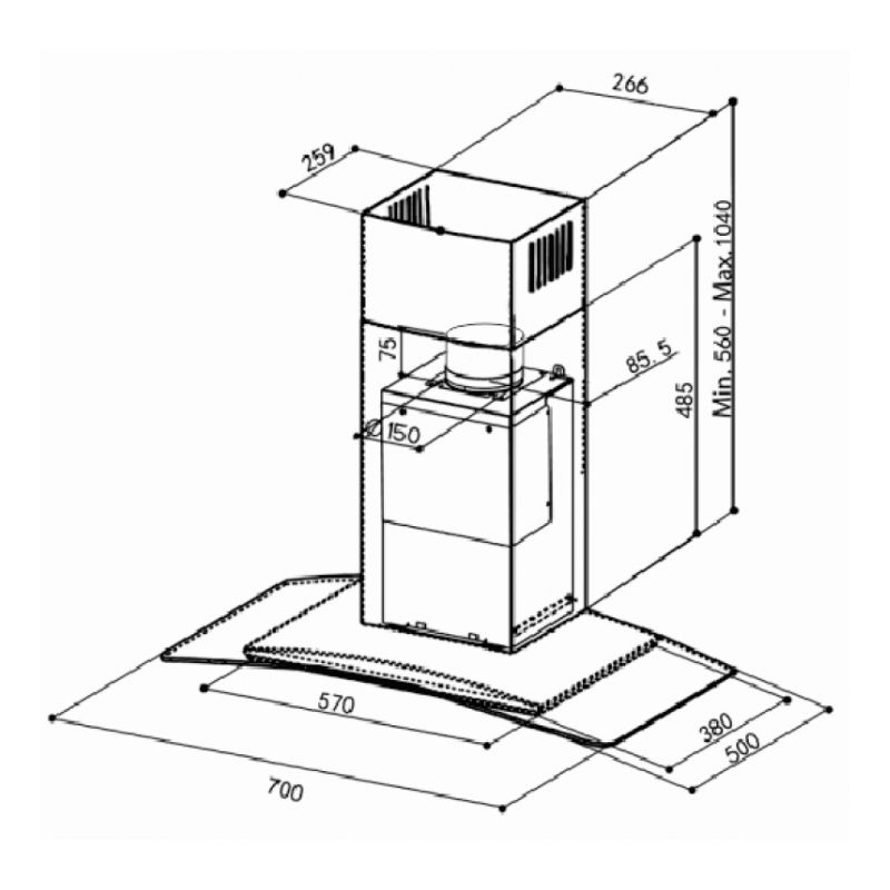 – Kiểu dáng: máy hút mùi gắn tường kính cong
