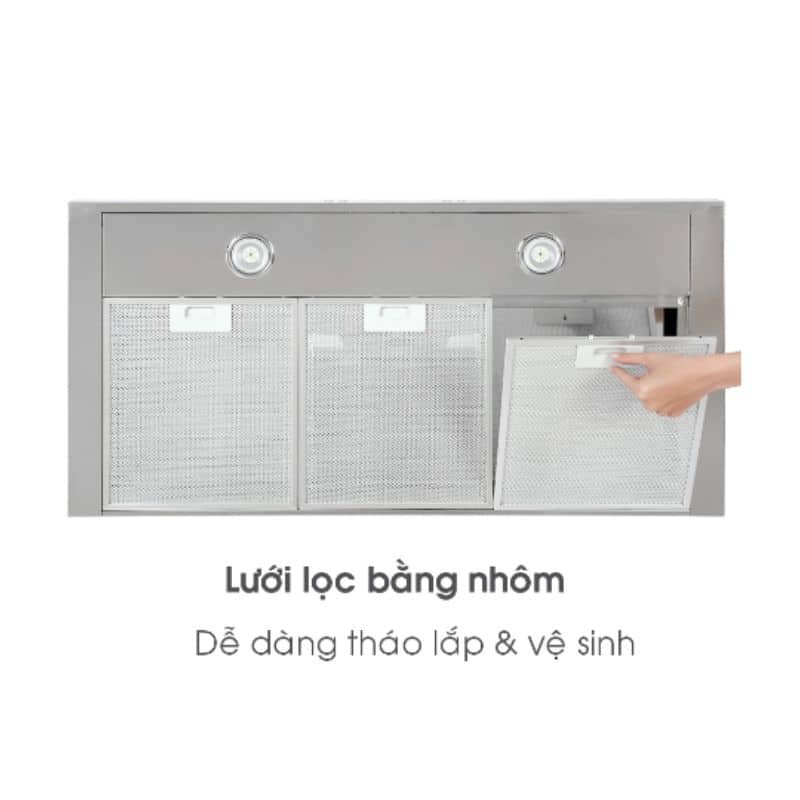 - Thiết kế lưới lọc bằng nhôm có thể tháo rời giúp người dùng thực hiện công đoạn giặt rửa, lau chùi một cách dễ dàng chỉ bằng những thao tác xoay vặn đơn giản.