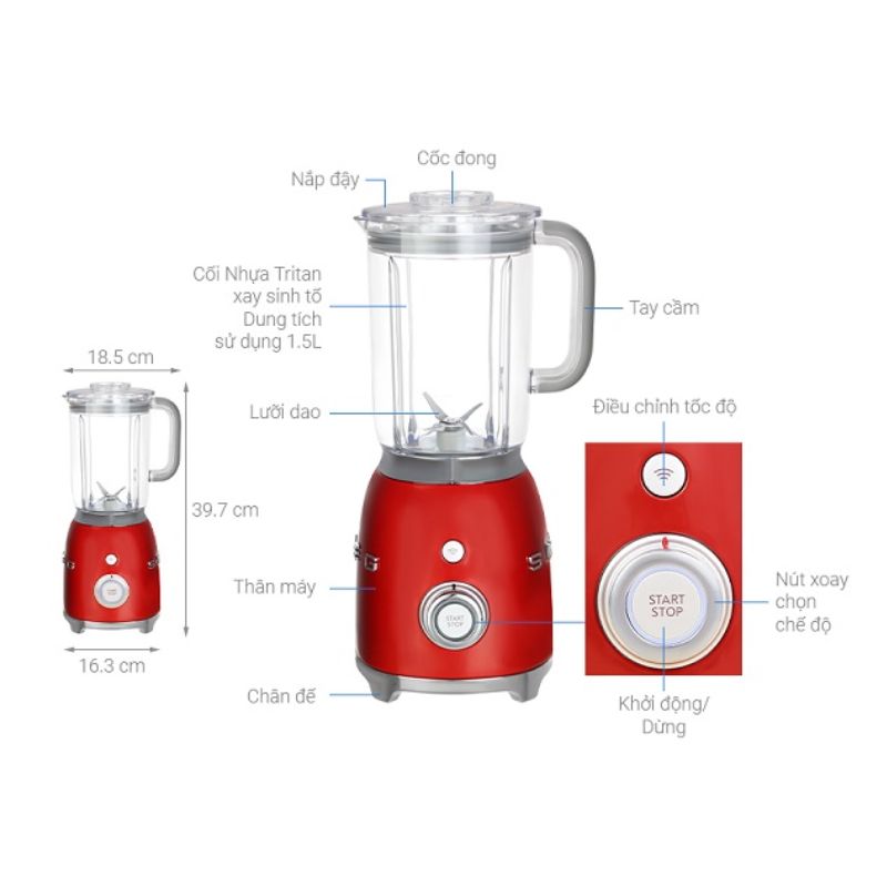 Máy say sinh tố Hafele Smeg BLF01RDEU 535.43.639 màu đỏ